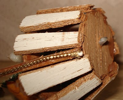 You can see where the Christmas tree was screwed into the bottom of the ornament as well as the glue, which leads me to believe it was handmade, probably from a kit.